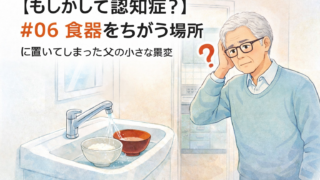 父が食べ終わった食器をキッチンではなく洗面所へ。そのときは笑って済ませた小さな出来事が、今思えば認知症のサインでした。家族が見逃しやすい初期の違和感を体験談で綴ります。