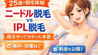 25歳でワキはニードル脱毛、26歳で腕、脚、うなじを光脱毛で体験。痛み・効果・料金の違いをリアルに解説。現在の脱毛事情もわかります。「