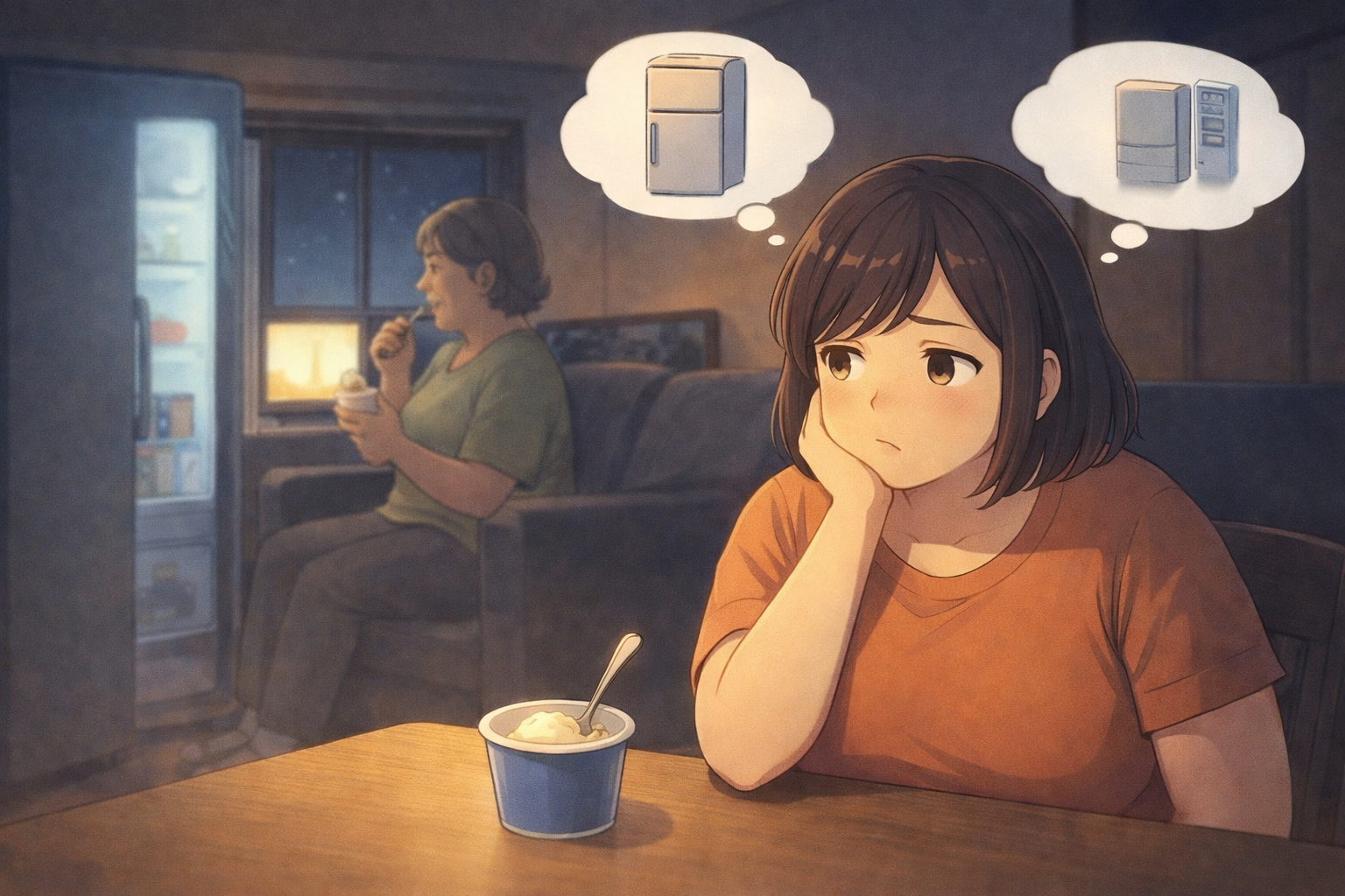夜、母と一緒にテレビを観ていたとき、母がわたしの横でカップアイスを食べ始めたんです。(夕食後のこと)