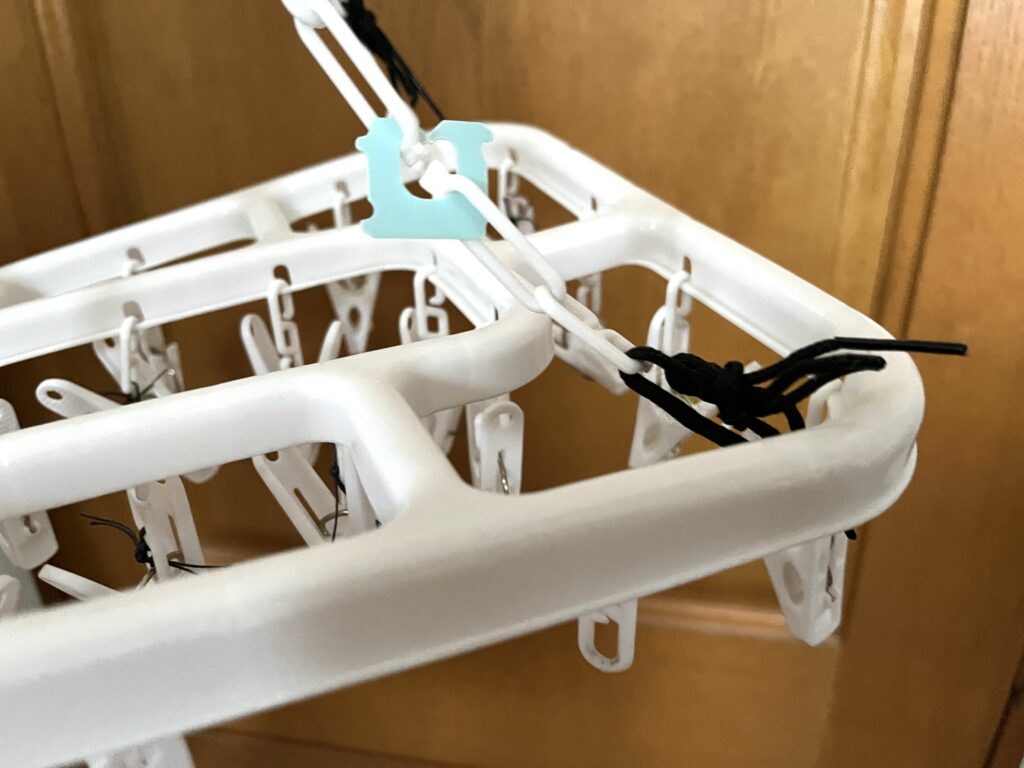 外に干していると、紫外線や風雨の影響を受けて、だんだんとプラスチックが弱くなっていきます。(毎回、家の中にしまっておけばいいけどメンドクサイ…)
