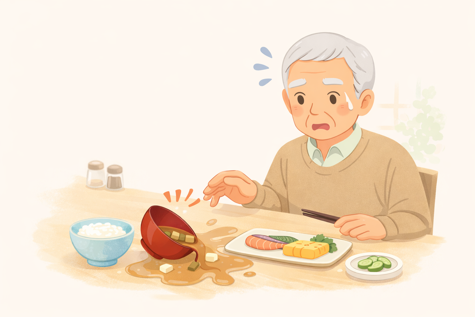 まだ口をつけていないアツアツのみそ汁を、こぼしてしまったんです。父が。