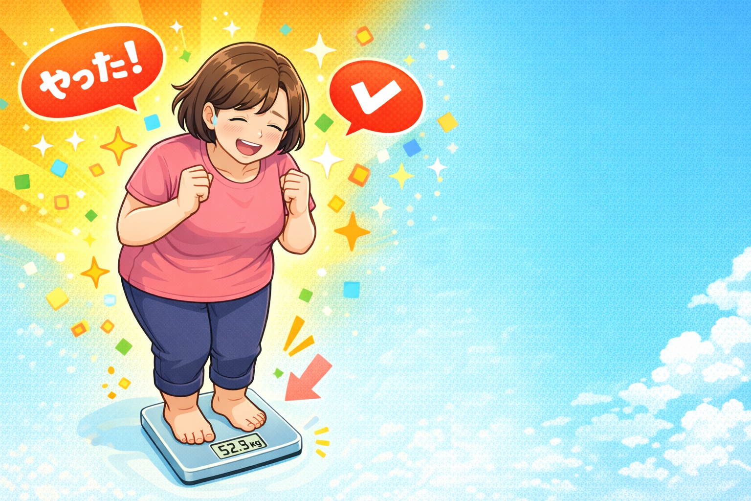 今まで、増えるいっぽうだった体重が、現状維持ではなく減っている!それだけでも合格のような気がしています。