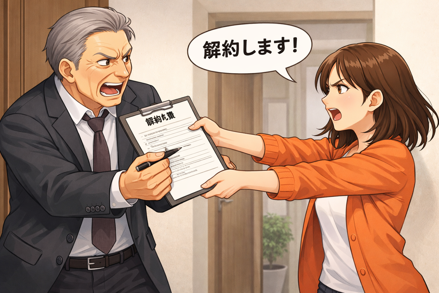 だって、気まずくないですか?さっき契約したばかりで、すぐに解約って。